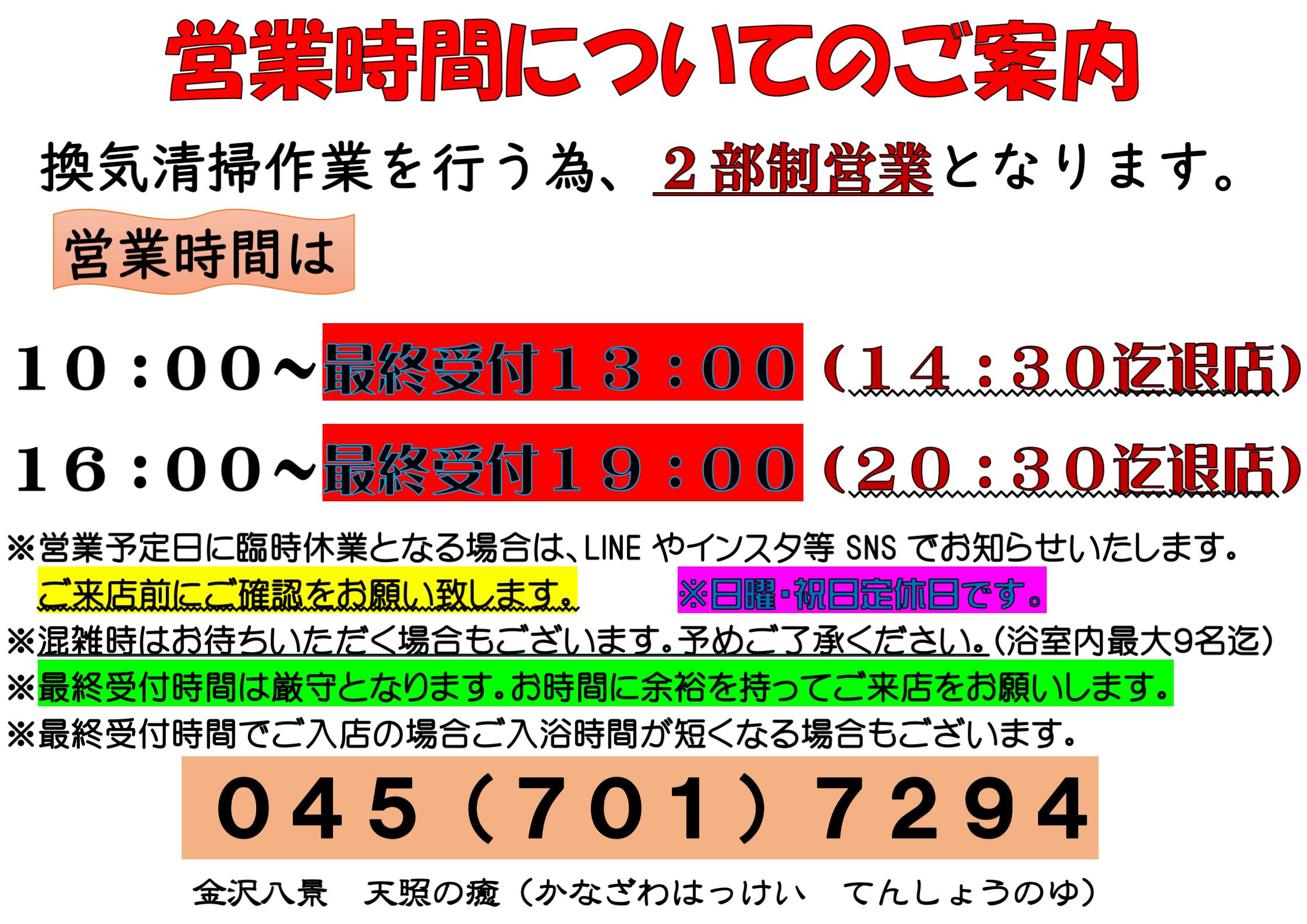 営業時間についてのご案内
