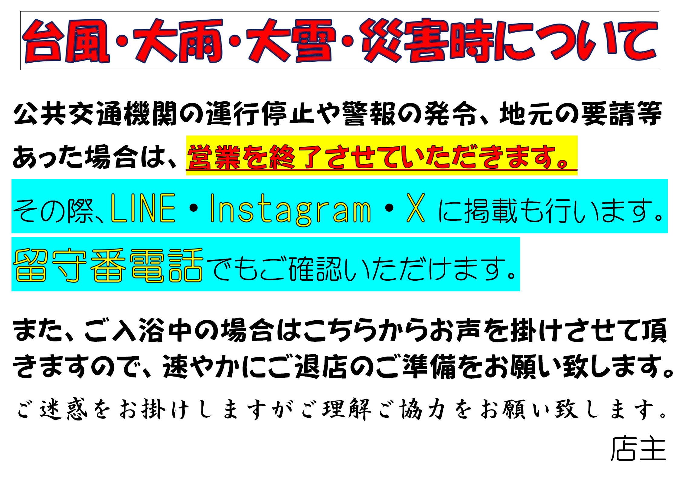 台風・大雨・大雪等災害時についてのご案内